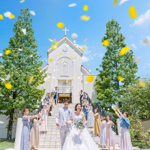 | おすすめ ポイント | チャペル前の大階段は必見!ゲストからの祝福を受けて感激のフラワーシャワーやバルーンリリースが楽しめる! |