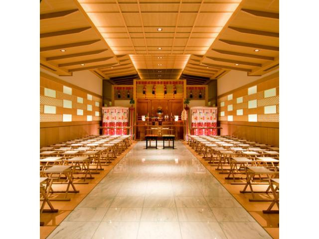 【7つの神社・本格神殿・絶景チャペルをご紹介】日本で唯一浅草神社の分社指定された組木細工を特徴とする神殿や正面にスカイツリーと浅草の街並みを見渡せる圧巻のチャペルをご紹介。幅広い人数帯のご案内が可能。
