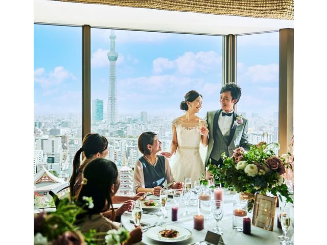 | おすすめ ポイント | 浅草神社など由緒ある7つの神社や寺院から選ぶ挙式の場。行き交う人からも祝福をうける花嫁道中。空の上での結婚式をイメージしたスカイチャペル挙式では豊かな眺望とゲストと近い距離が心温まる挙式を叶えます。 |