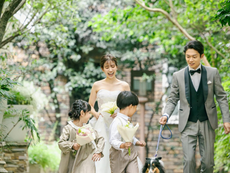 貸切だからこそ、大切なペットも挙式から披露宴までずっと一緒に過ごせます。
