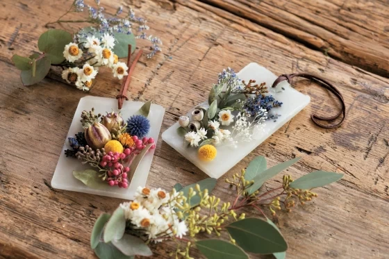 これからDIYデビューするプレ花嫁さんでも、簡単にチャレンジできるアイデアとテクニックが満載!アイテムの作り方だけでなく、結婚式の演出や装飾のヒント、会場をより素敵に見せる統一感の出し方といったコーディネート法も紹介されています。