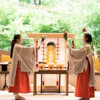 神前式は、日本の伝統と厳粛な神道の儀式が織り成す、格式高く深遠な結婚式です。神様へふたりの結婚を報告する儀式は、先祖を敬う心や家族の絆を再認識する機会となり、白無垢や色打掛などの美しい衣裳が更にその雰囲気を高めます。神殿内への入場、雅楽に合わせた巫女舞など、神前式ならではのシーンはゲストにとっても印象深い体験になることでしょう。